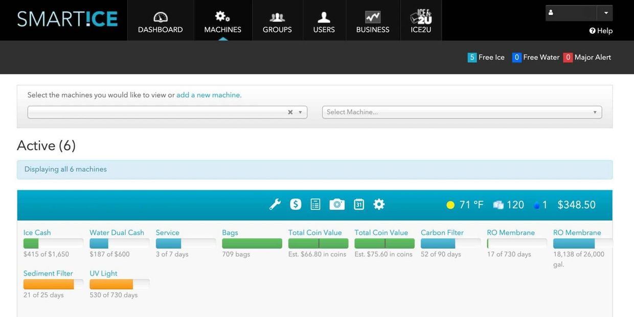 SmartIce allows you to get a multitude of reports about your machines. You can easily view your total ice and water sales, last time you serviced the machine, and any outstanding operational issues.